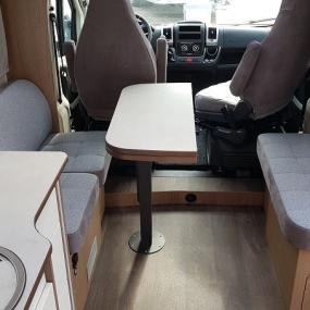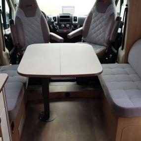 Die Sitzgruppe besteht aus zwei Sitzbänken für jeweils bis zu 2 Personen und den beiden drehbaren Vordersitzen. Bei allen Sitzpositionen sitzt man nahe am Tisch, der beweglich ist und auch teilweise entfernt werden kann.