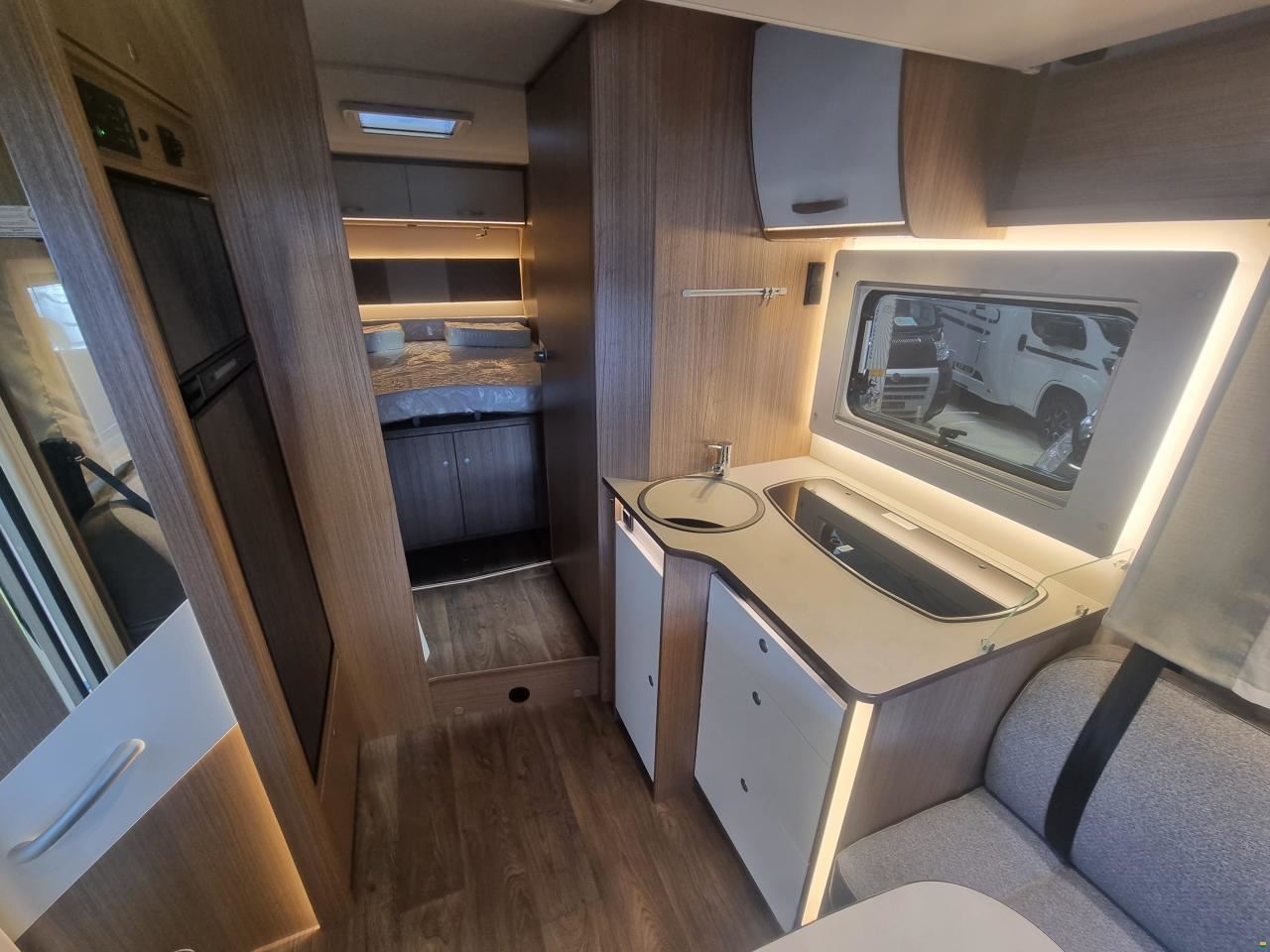 Die Heckgarage ist mit Beleuchtung, einer 220-Volt-Steckdose, mehreren flexiblen Verzurrösen und einem Antirutschboden ausgestattet. Sie verfügt über Türen an beiden Fahrzeugseiten und eine Rahmenabsenkung, wodurch das das Be- und Entladen leicht gemacht wird.
