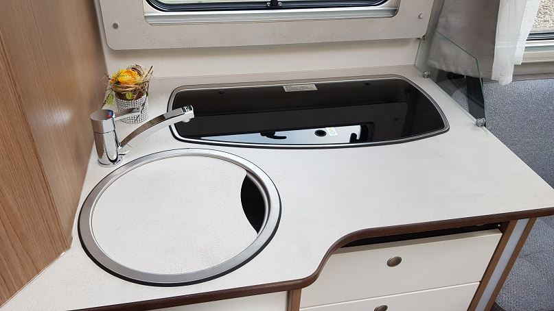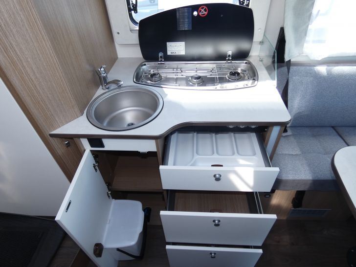 122-Liter Frischwassertank, 92-Liter Abwassertank.