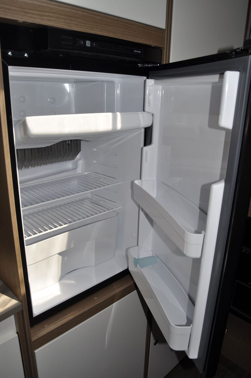 Kühlschrank mit Frosterfach mit automatischer bedarfsgerechter automatischer Umschaltfunktion auf Gas-, 12V- oder 220V-Strom-Versorgung.