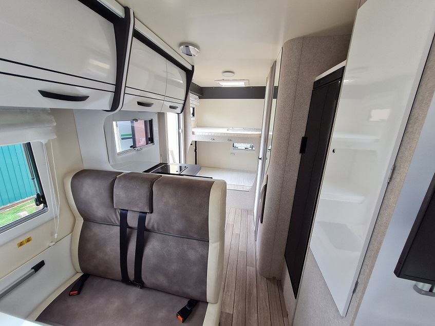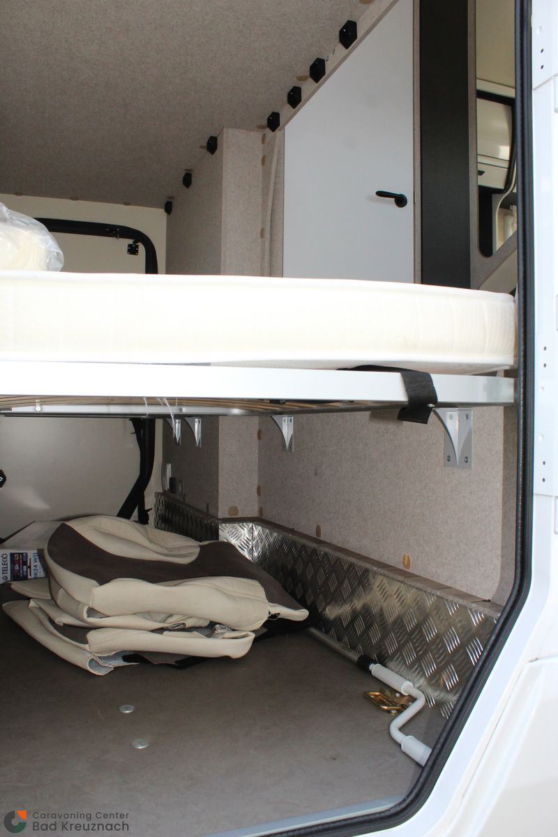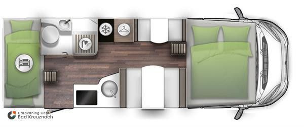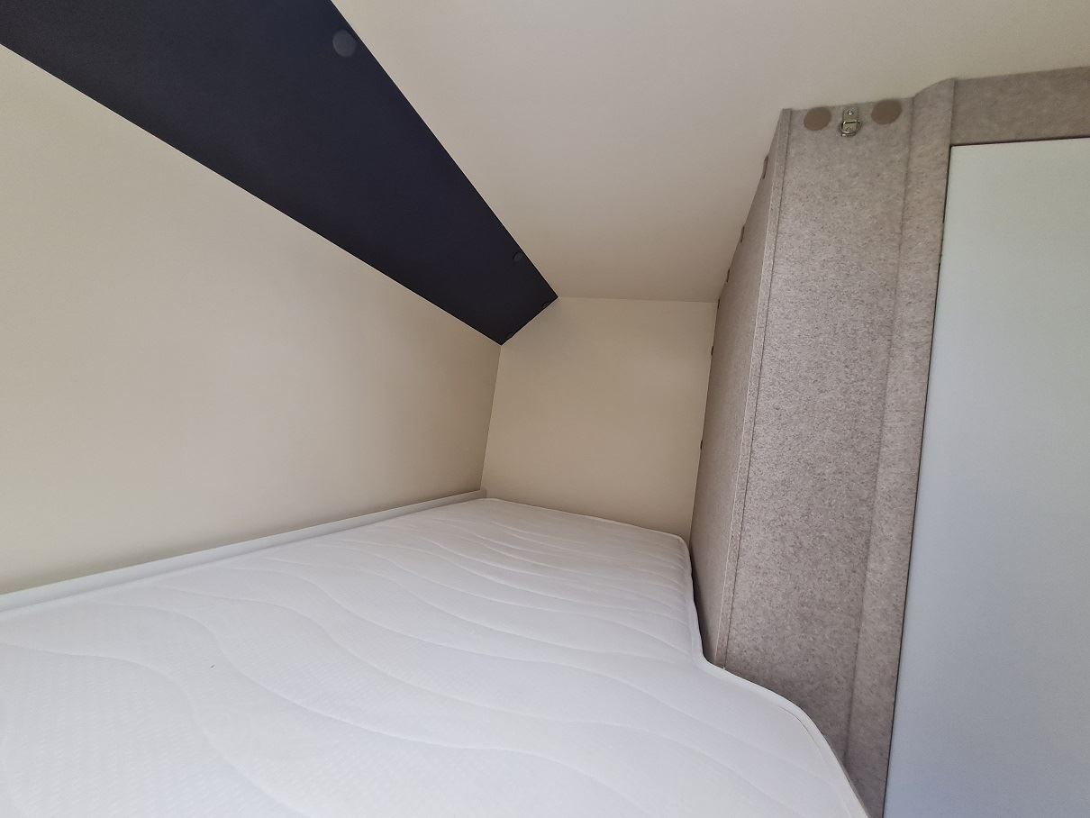 Die Betten haben durch ihre Anordnung vorne und hinten im Wohnmobil einen großen Abstand zueinander.