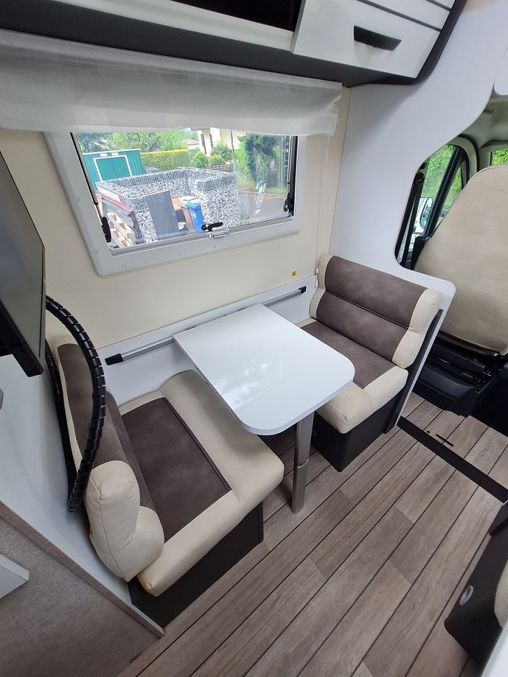 Dieses Wohnmobil verfügt über 8 Sitzplätze und 7 Schlafplätze.