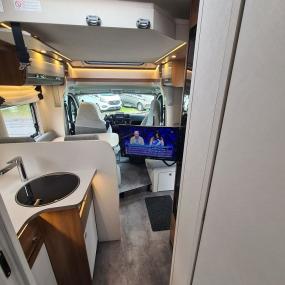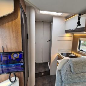 Das Wohnmobil ist zudem mit einem multifunktionalen Flachbild-Fernsehen und einer SAT-Anlage mit automatischer Satellitensuche ausgestattet.