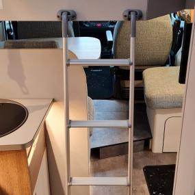 Trittstufe zum Einstieg in den Wohnraum im Fahrzeug integriert.