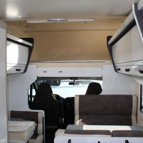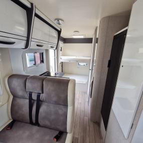 Die Betten haben durch ihre Anordnung vorne und hinten im Wohnmobil einen großen Abstand zueinander.