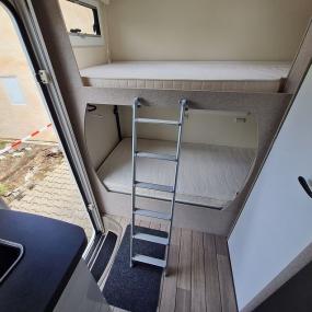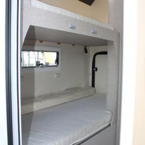 Etagenbetten im Heck 2,12m x 0,87m und 2,12m x 0,83m.
