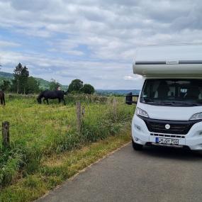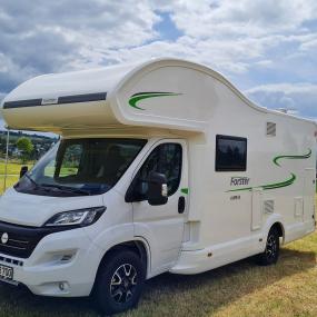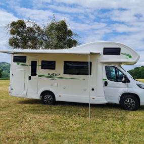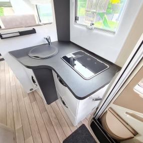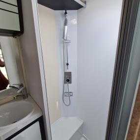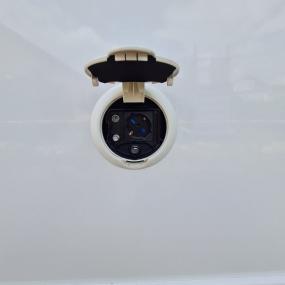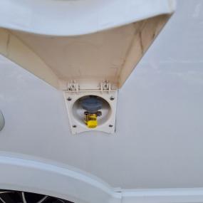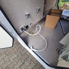 Als Besonderheit verfügt dieses Wohnmobil zudem über eine Außendusche sowie Abnahmestellen an der Außenwand für Gas und Strom.