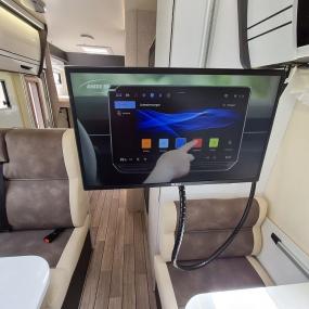 Das Wohnmobil besitzt eine Multimediaanlage unter anderem mit Rückfahrkamera.